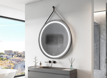 Ο στρογγυλός φωτιζόμενος καθρέφτης είναι προσαρτημένος σε δερμάτινο ιμάντα, ο οποίος διατίθεται σε τρεις επιλογές χρωμάτων: μαύρο, ανοιχτό καφέ και σκούρο καφέ. Η δυνατότητα εξατομίκευσης σας επιτρέπει να προσαρμόσετε τον καθρέφτη στα δικά σας γούστα και στο δικό σας εσωτερικό στυλ. Κομψή ζώνη από γνήσιο δέρμα.