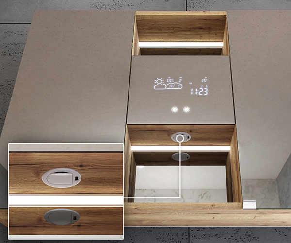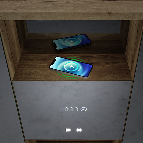 Επαγωγικός φορτιστήςΧρησιμοποιήστε τον επαγωγικό που τοποθετείται στη μέση του ντουλαπιού κατά τη διάρκεια της πρωινής σας τουαλέτας για να φορτίσετε το τηλέφωνό σας. Η διαδικασία θα ξεκινήσει όταν τοποθετήσετε το smartphone σας στον προβλεπόμενο χώρο.